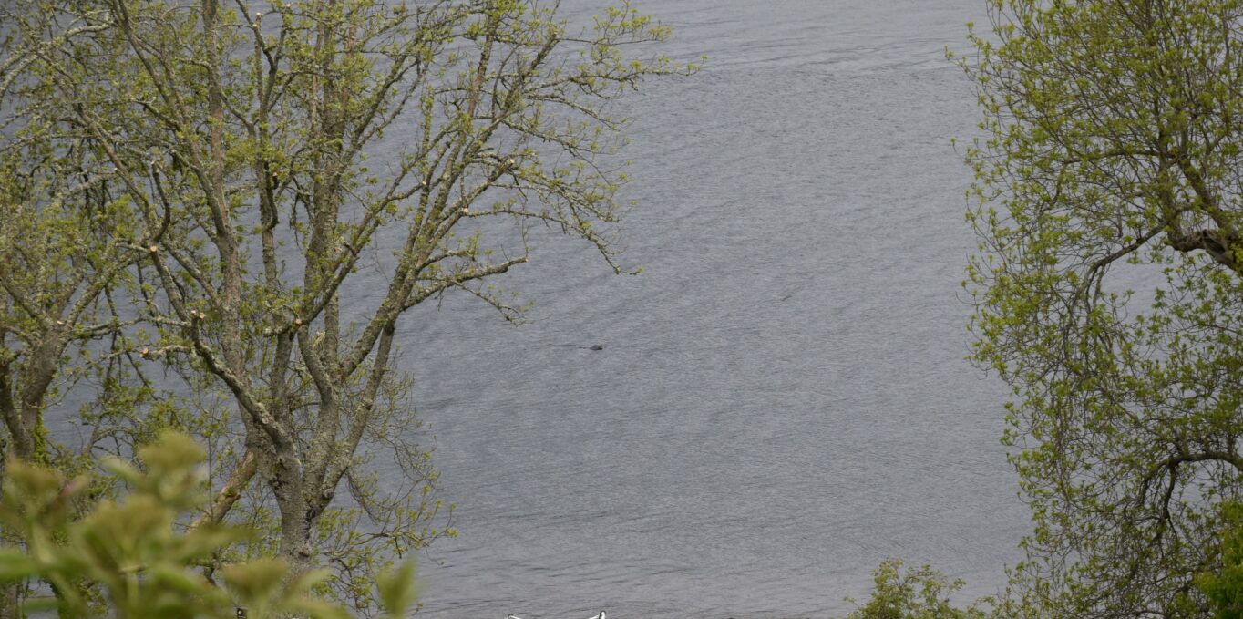 Armed with binoculars, Annette was scanning the loch when she spotted something dark, grey, and moving. “It looked alive,” she said. A few bubbles appeared on the surface, and she managed to capture a photo before the object dipped below the water and vanished. There was tree debris near the outflow pipe that week — but as always, it doesn’t explain everything.